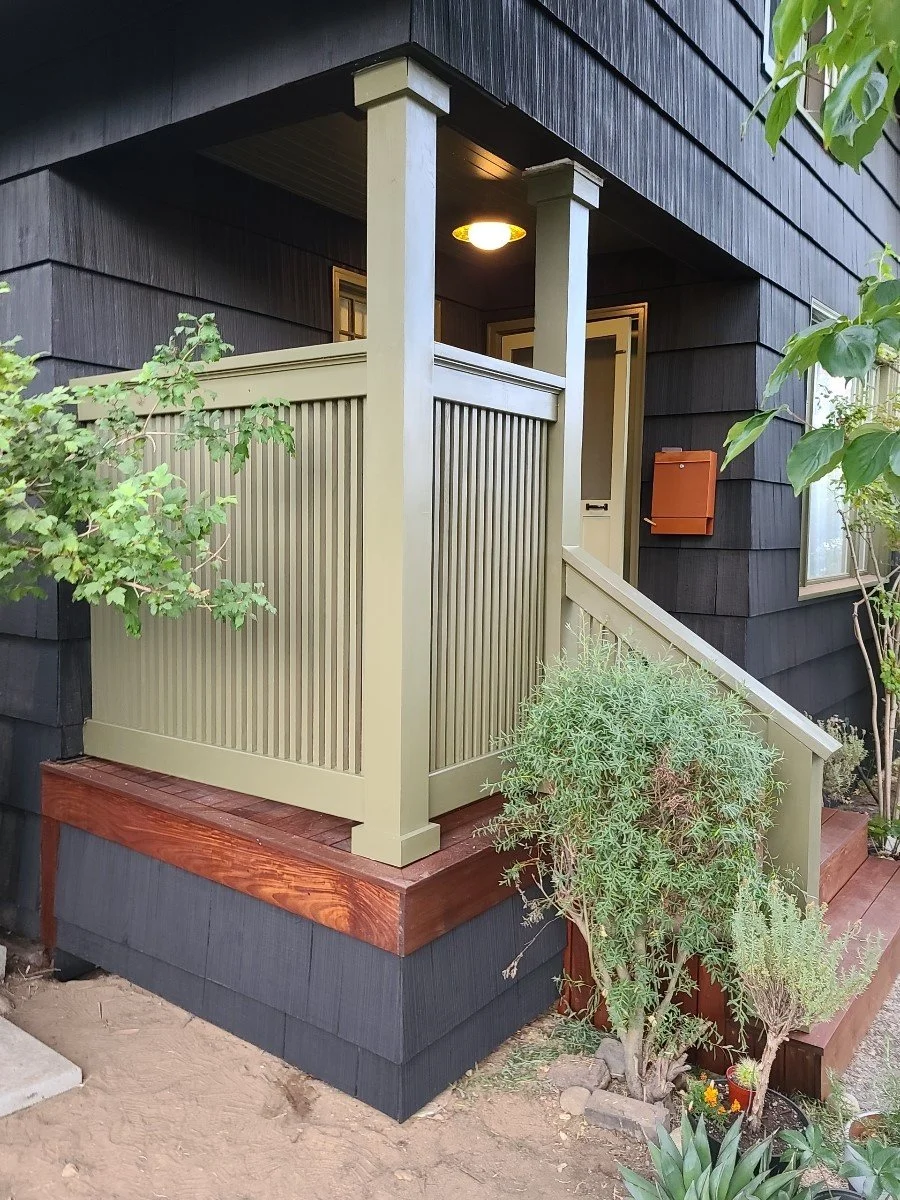 A new front porch for this North Seattle home. this side of the house doesn’t see much sunlight resulting in many areas of the deck becoming rotted. All deck boards, handrails, and columns were replaced.